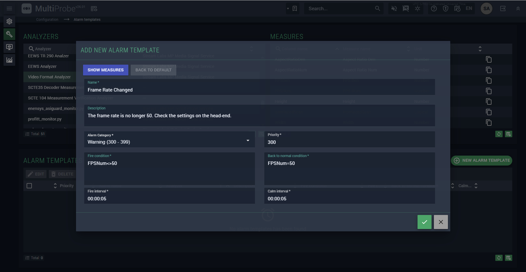 The VideoFormat Analyzer surfaces key signal characteristics: resolution, frame rate, bit depth, chroma subsampling, and more. Use these to build presets and alarm rules tailored to your facility's specific requirements.