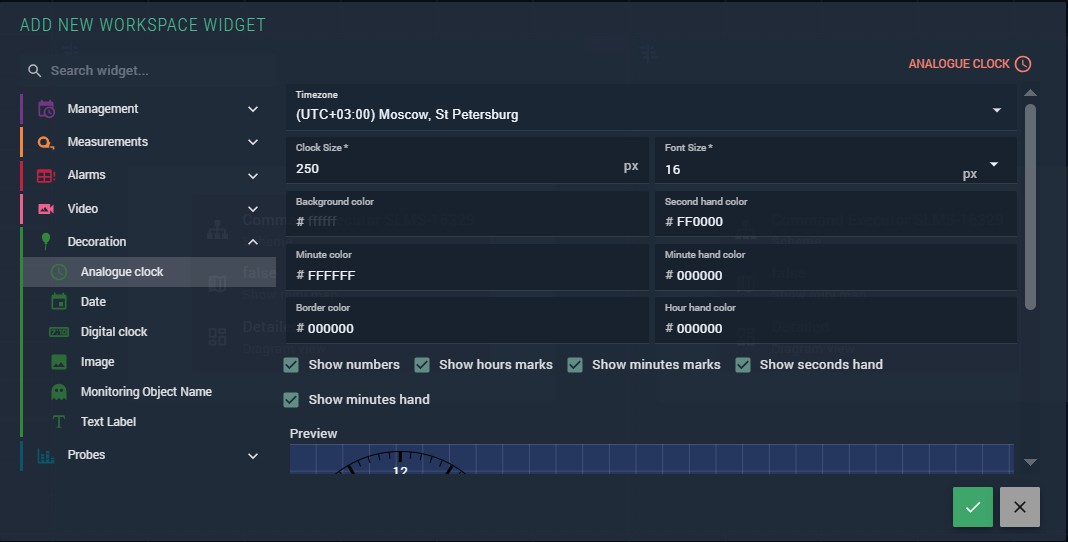 Figure 304. Analogue clock widget parameters