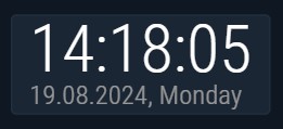 The Digital clock widget displays the current time and date in a digital (text) format. Like the Date widget, it supports 26 date formats and allows customization of time zone, font size, font color, and alignment. The time can be shown in 12-hour (12H) or 24-hour (24H) format.