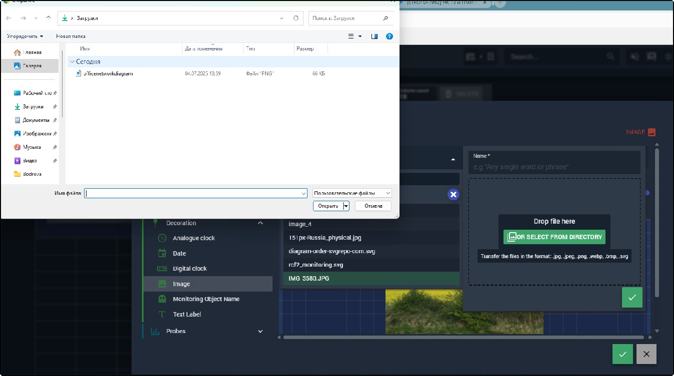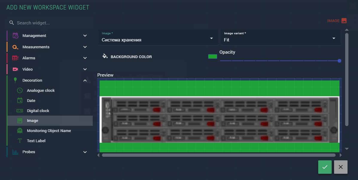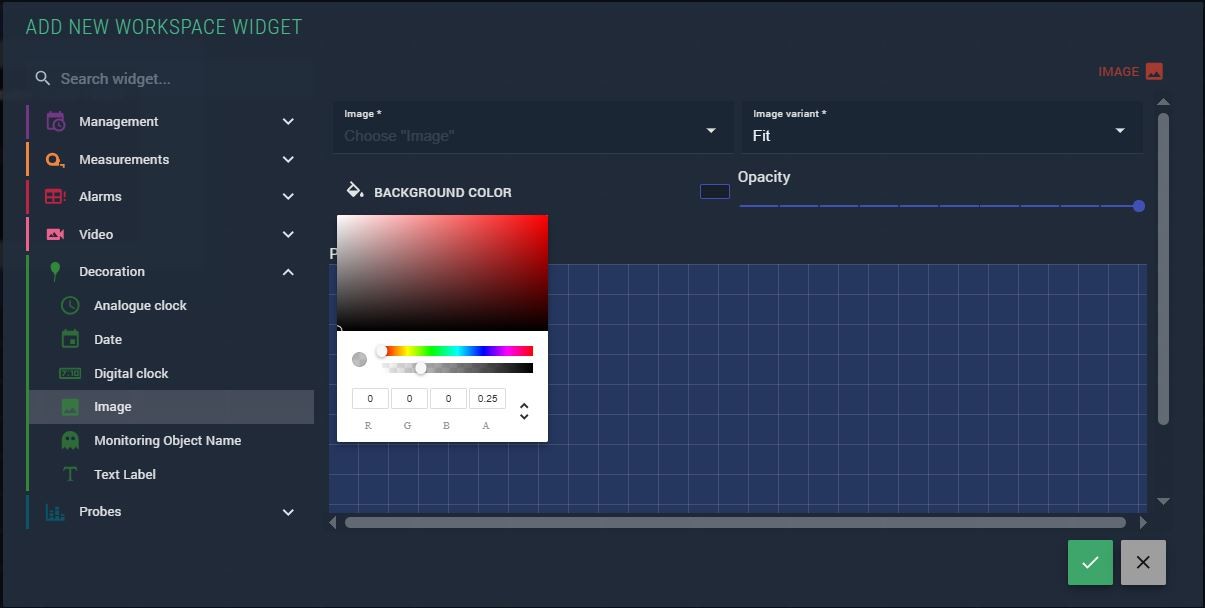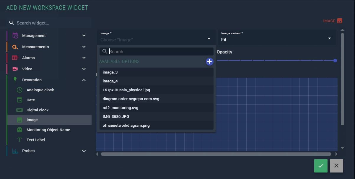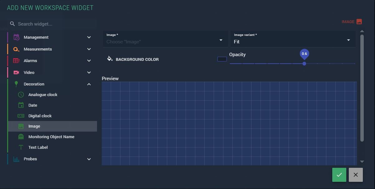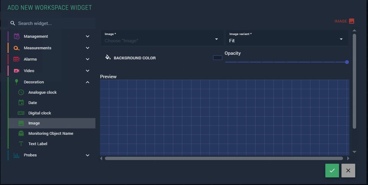 The Image widget places a static image into a workspace, layout, virtual service diagram, or scheme. It is commonly used to add logos, background graphics, or custom annotations to monitoring views.