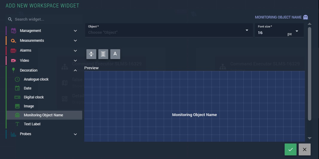 Figure 317. Monitoring object name widget parameters