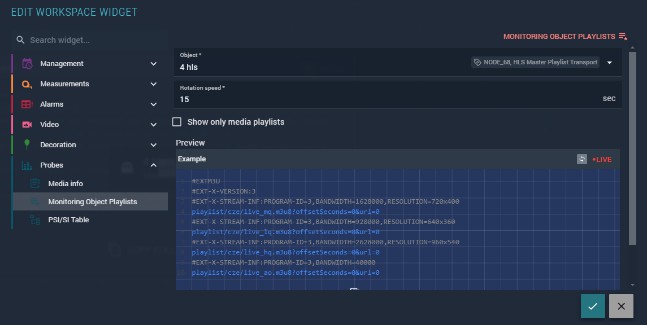 This widget is useful for inspecting HLS playlist structure in real time directly from the workspace.