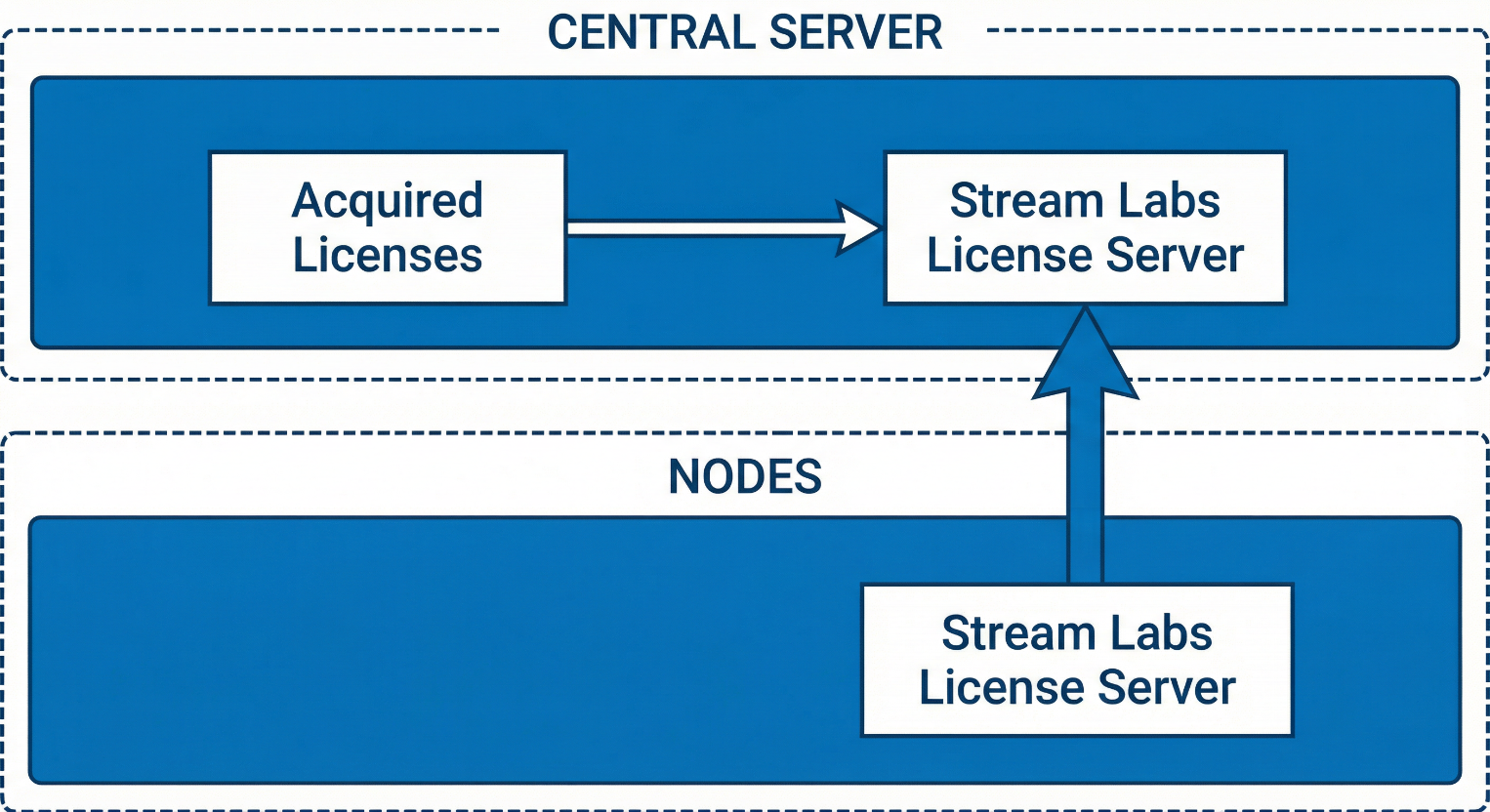 Node License Servers automatically request and apply license information from the Central Server. This provides flexibility — licenses can be redistributed among nodes at any time based on operational needs, without reinstalling anything.