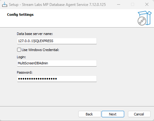 After installing Stream Labs MP Database Agent Service, launch the SQL DB Agent Configurator and enter the database connection attributes: