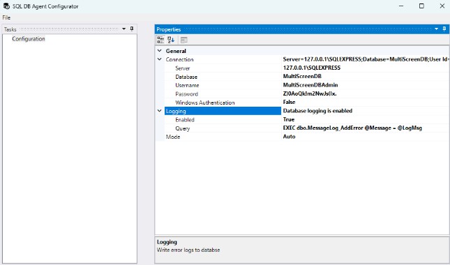 Figure 9. Properties of the SQL DB Agent Configurator (example)