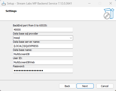 Figure 10. Settings of Stream Labs MP Backend Service