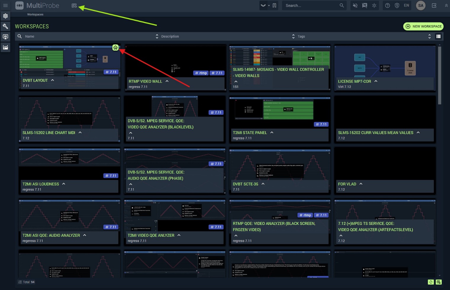 The Workspace screen displays all user-configured workspaces as thumbnails, making it easy to find and switch to the one you need at a glance.