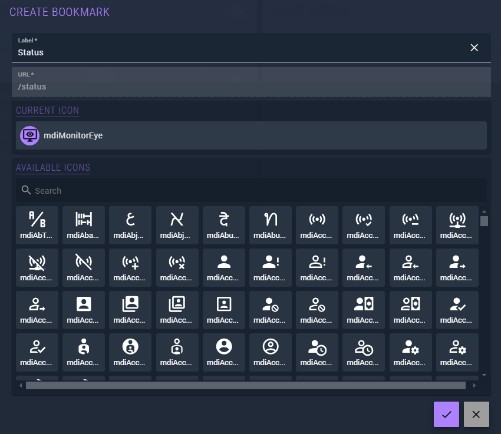 The bookmark window also lets you copy the page URL — useful for sharing direct links to specific screens with colleagues.