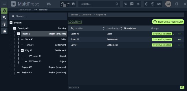 All nodes belong to the root location called System, which is the top of the hierarchy and contains all other locations.