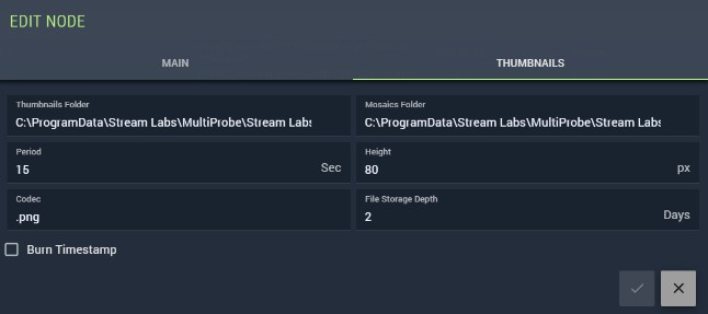 C:\ProgramData\Stream Labs\MultiProbe\Stream Labs MP Probe Manager Service - Mosaic folder — storage folder for Video Thumbnails widget images (see Section 12.5.2). Default: same as above.
