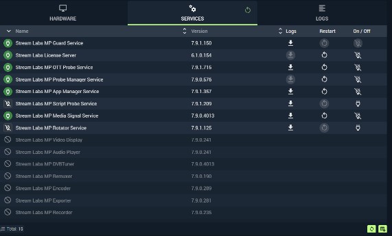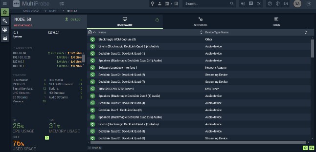 Services — lists installed MultiProbe services with version numbers.