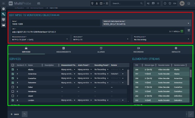 Figure 95. SMPTE 2022–6 monitoring object configuration screen