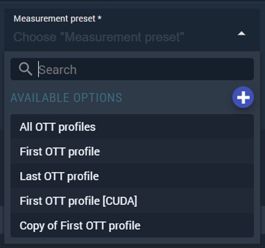 Measurement preset — select from the list; click