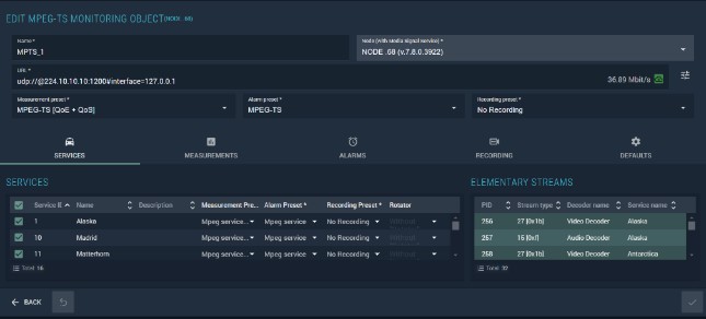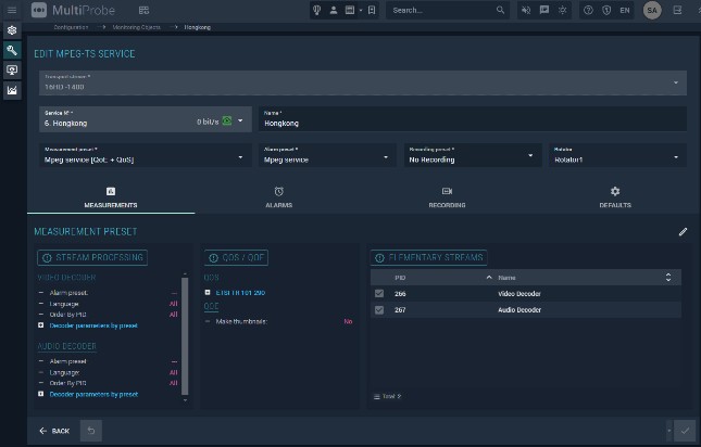 The service's elementary stream composition is displayed in the Elementary streams list on the Measurements tab (see Figure 91).