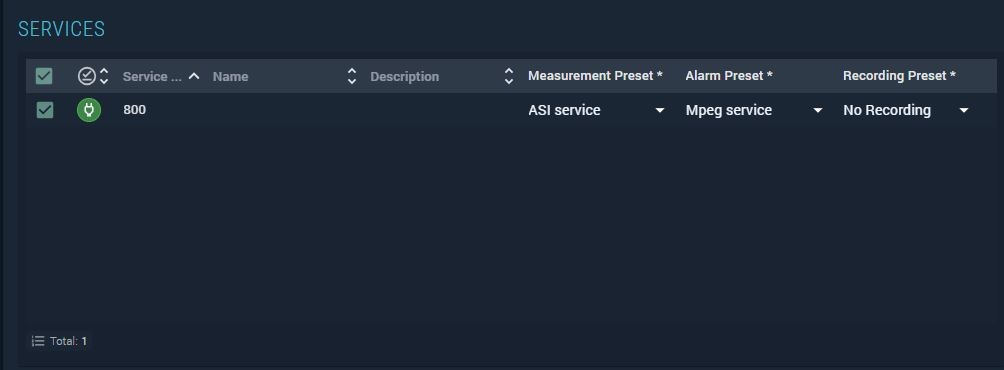 Recording preset — select the preset covering all services; click