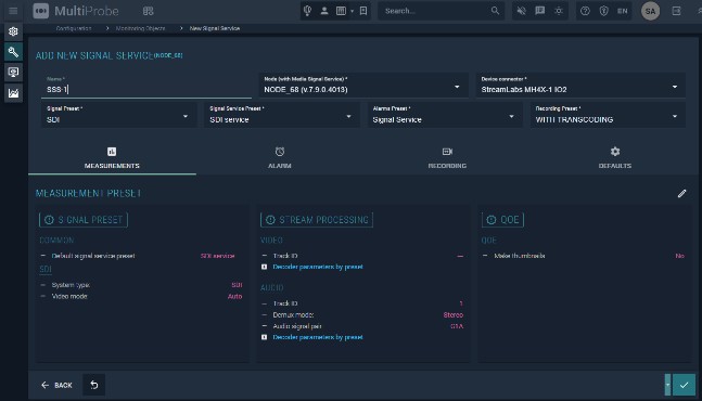 The Single signal service monitoring object monitors uncompressed signals such as SDI.