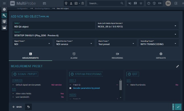 The NDI monitoring object monitors uncompressed signals transmitted over IP networks using NDI technology developed by NewTek.