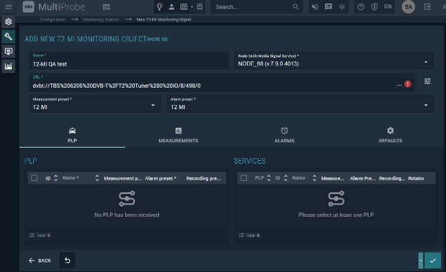Figure 100. DVB-T2 monitoring object configuration screen