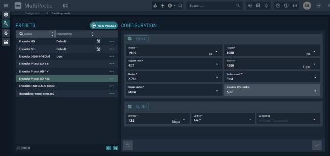 | Encoder preset | Encoder preset for signal transcoding. Select from the list or create a new one by clicking ![]() |