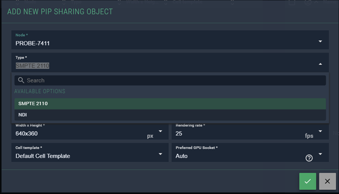 - Type — the type of PIP Sharing stream: SMPTE 2110 or NDI.