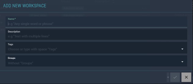 - Tags — tags assigned to the workspace. Tags must be defined in advance (see Section 4.5.4).