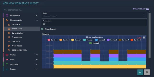 symbol and drop it into the desired cell in the grid. This opens the widget addition window, where you select the widget type and enter its parameters (Figure 193).
