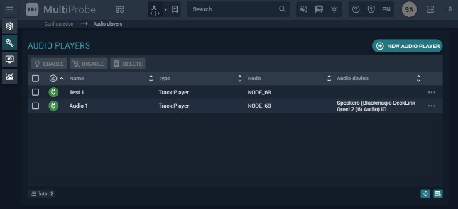 To access audio players, select Audio players in the Visualization section of the Configuration screen.