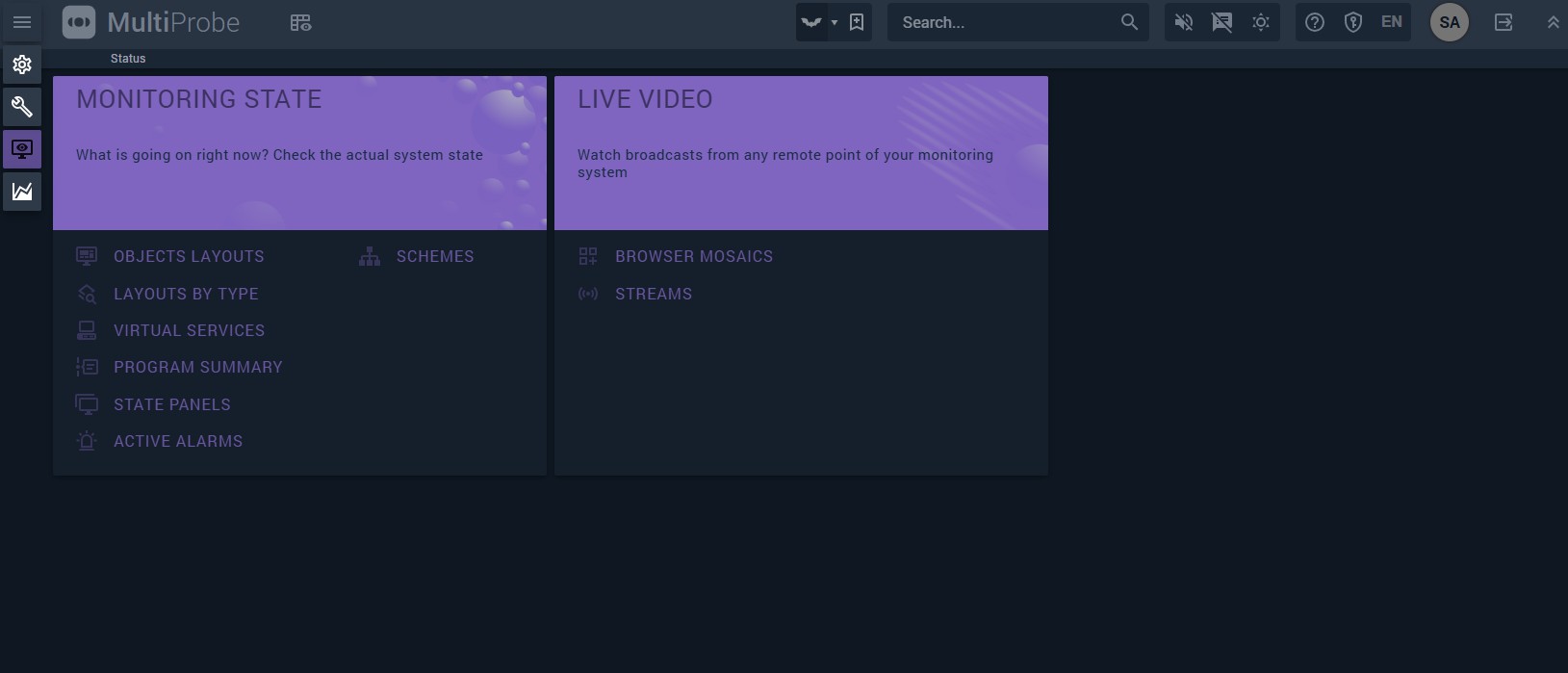The status of an object is a combination of parameter values that indicate its condition. The goal of monitoring is to determine the statuses of monitoring objects through measurements and calculations, and to visualize that information — displaying decoded images, audio, and other content for quality assessment by the operator.