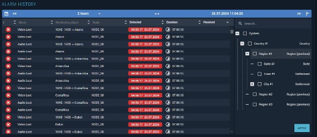 - Detected — date and time the alarm was detected (to the second).