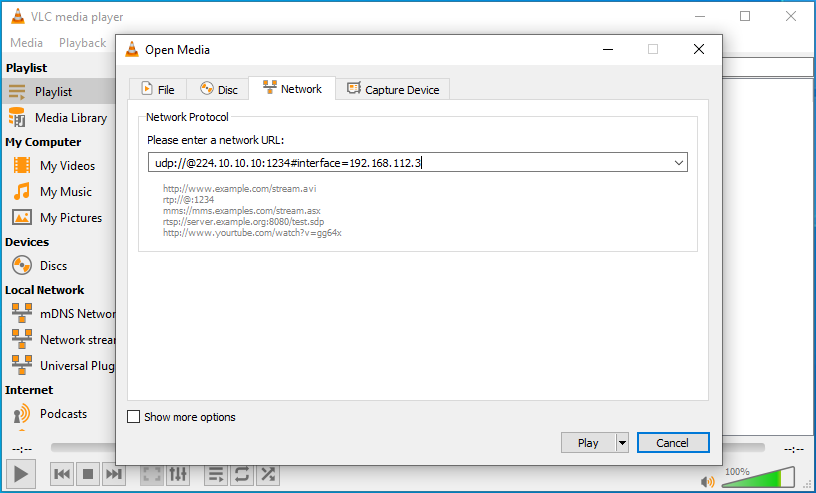 udp://@239.1.1.1:1234 - Click Play