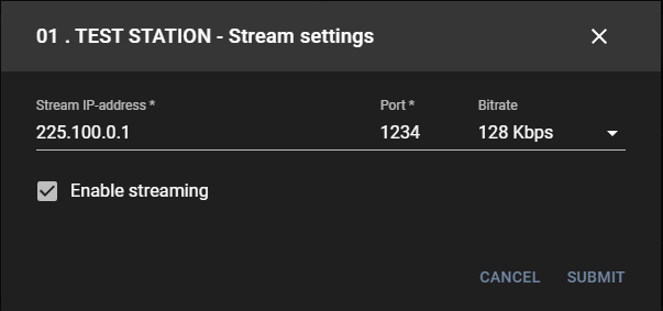 | Enable streaming | Check to activate streaming for this channel |