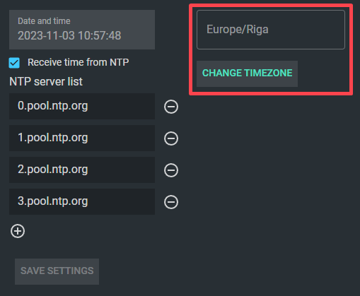 NTP provides UTC time. To display local time correctly in logs and the web interface:
