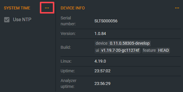 Accurate time is required for correct UTC error detection, EPG validation, and timestamped event logs. The TS Analyzer compares the time embedded in incoming transport streams against its own clock — if the device clock is wrong, UTC deviation readings will be meaningless.