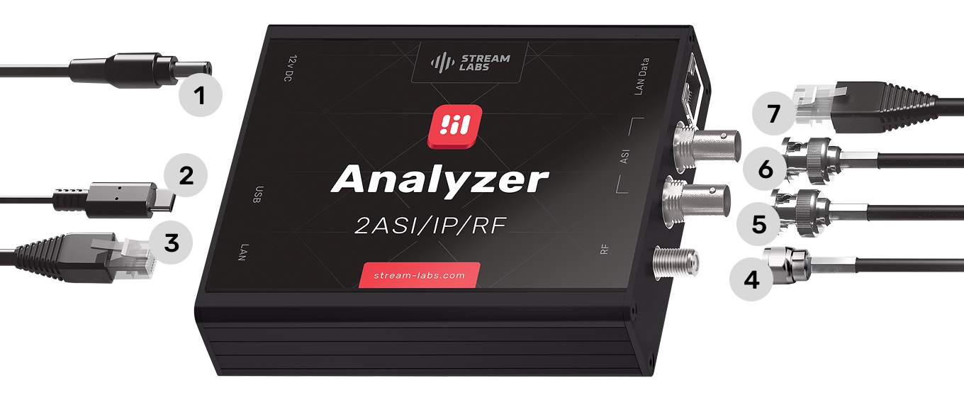 | 7 | LAN DATA | 1 Gb/s. Monitoring of MPEG TS and T2MI streams over IP. |