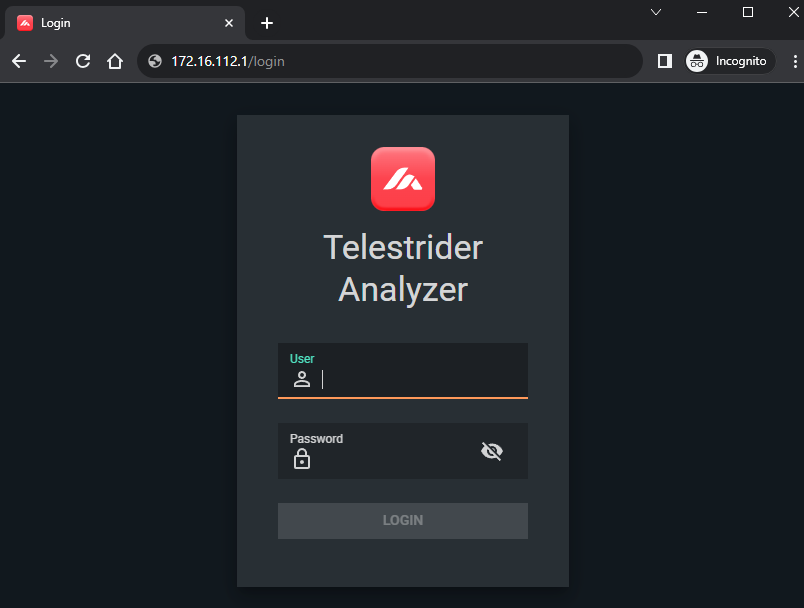 The default credentials are the same on every device. Change the password immediately after first login via Settings → Password before connecting the analyzer to any shared network.