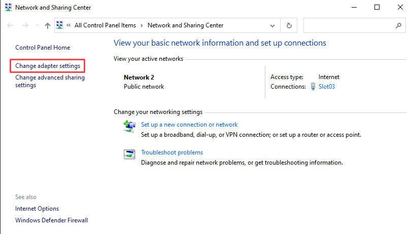 - Click Change adapter settings on the left.