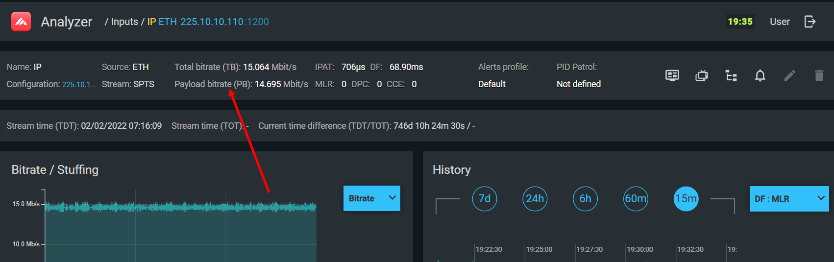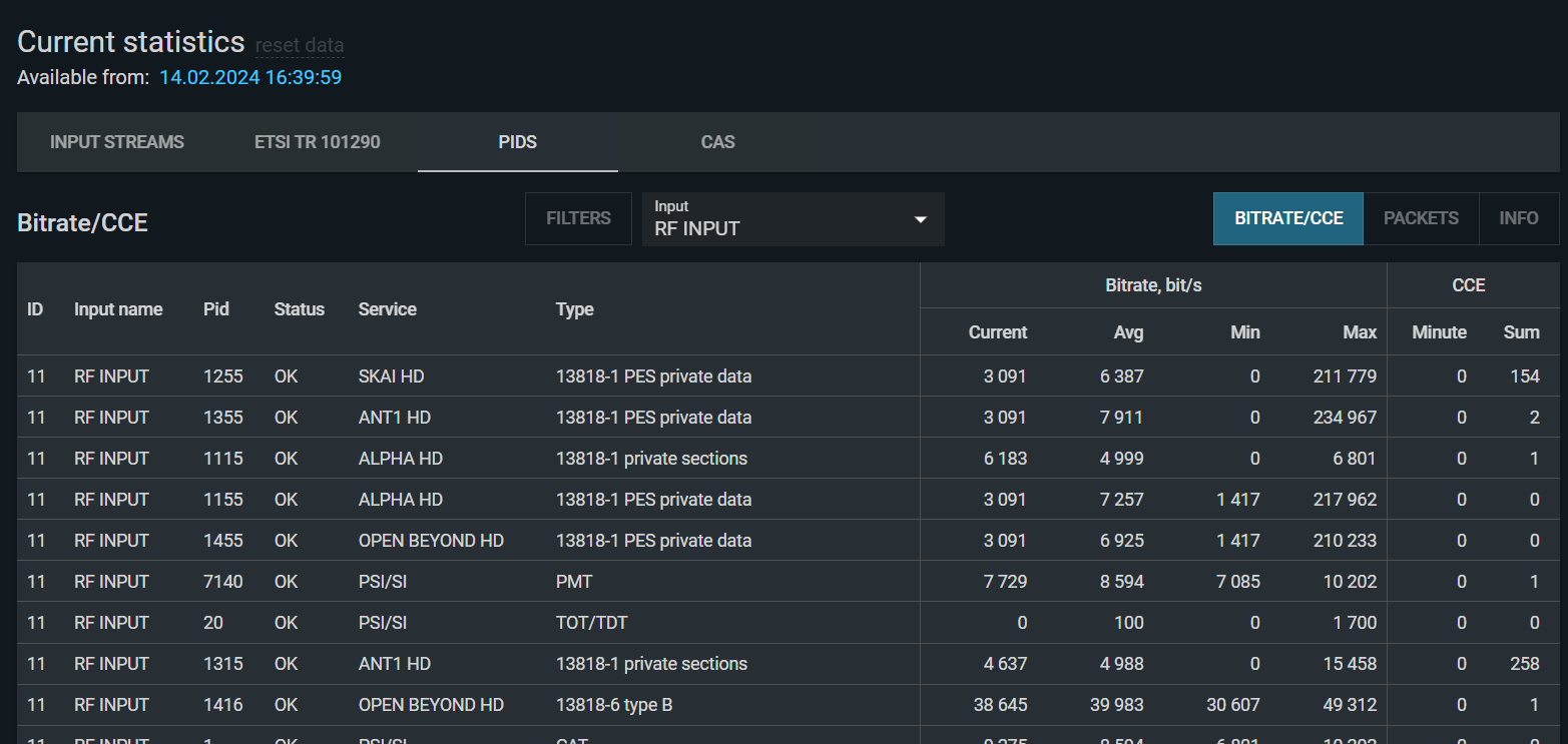 | PID bitrate | Bitrate of a single PID. |