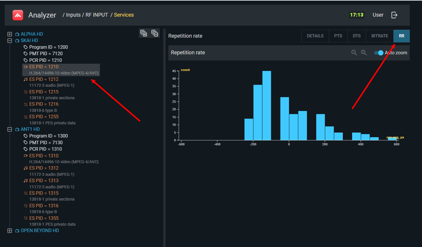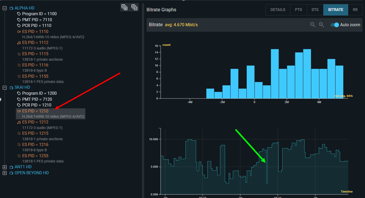 Individual PID bitrates with histograms: