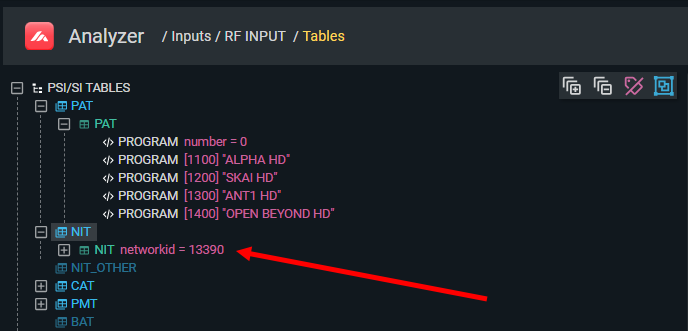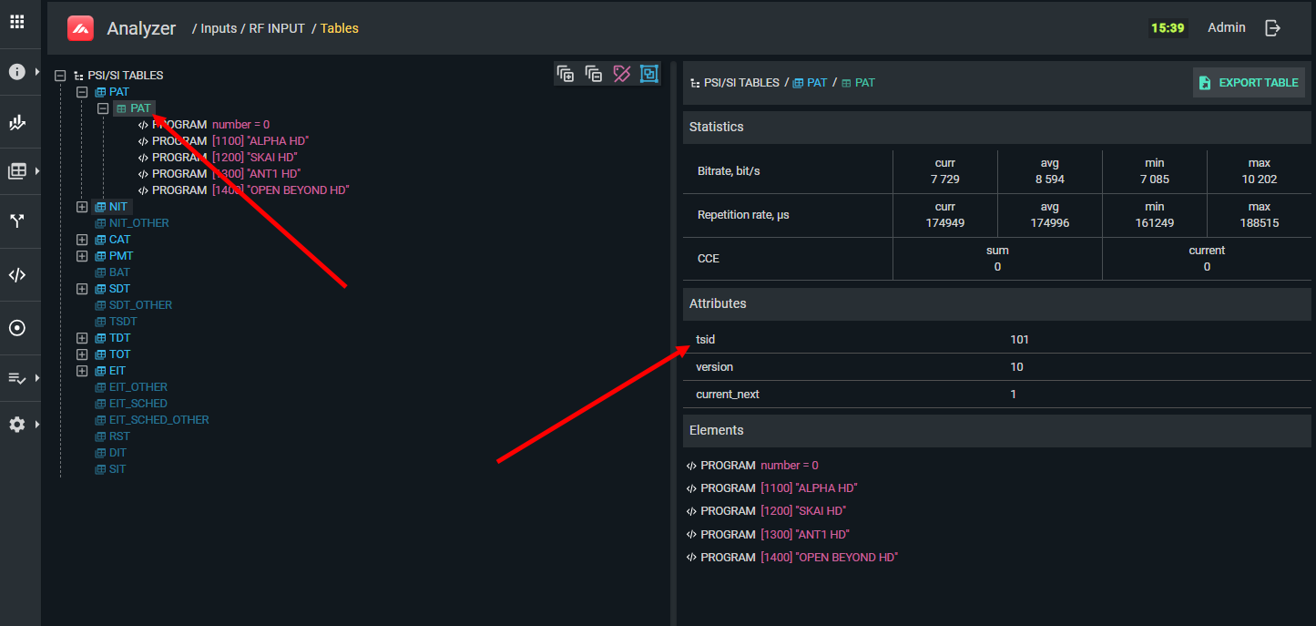 Open PAT and note the TS ID — this is the transport stream ID of the current stream.