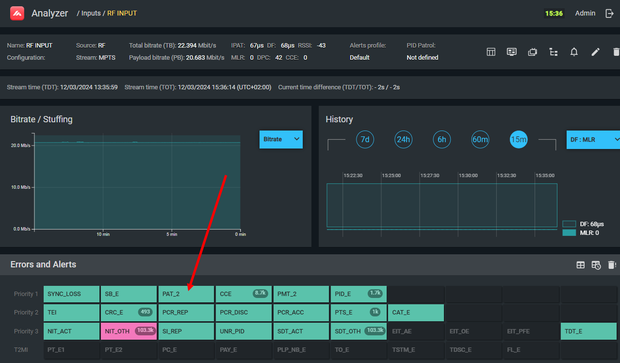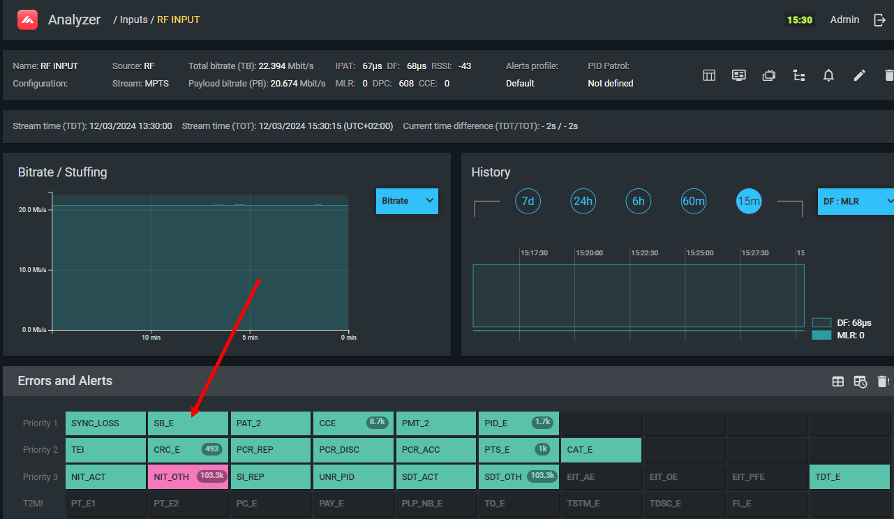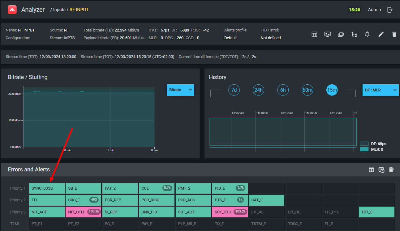 - Interference causing the sync byte to be consistently corrupted (in this case TS_sync_loss will usually also be active)