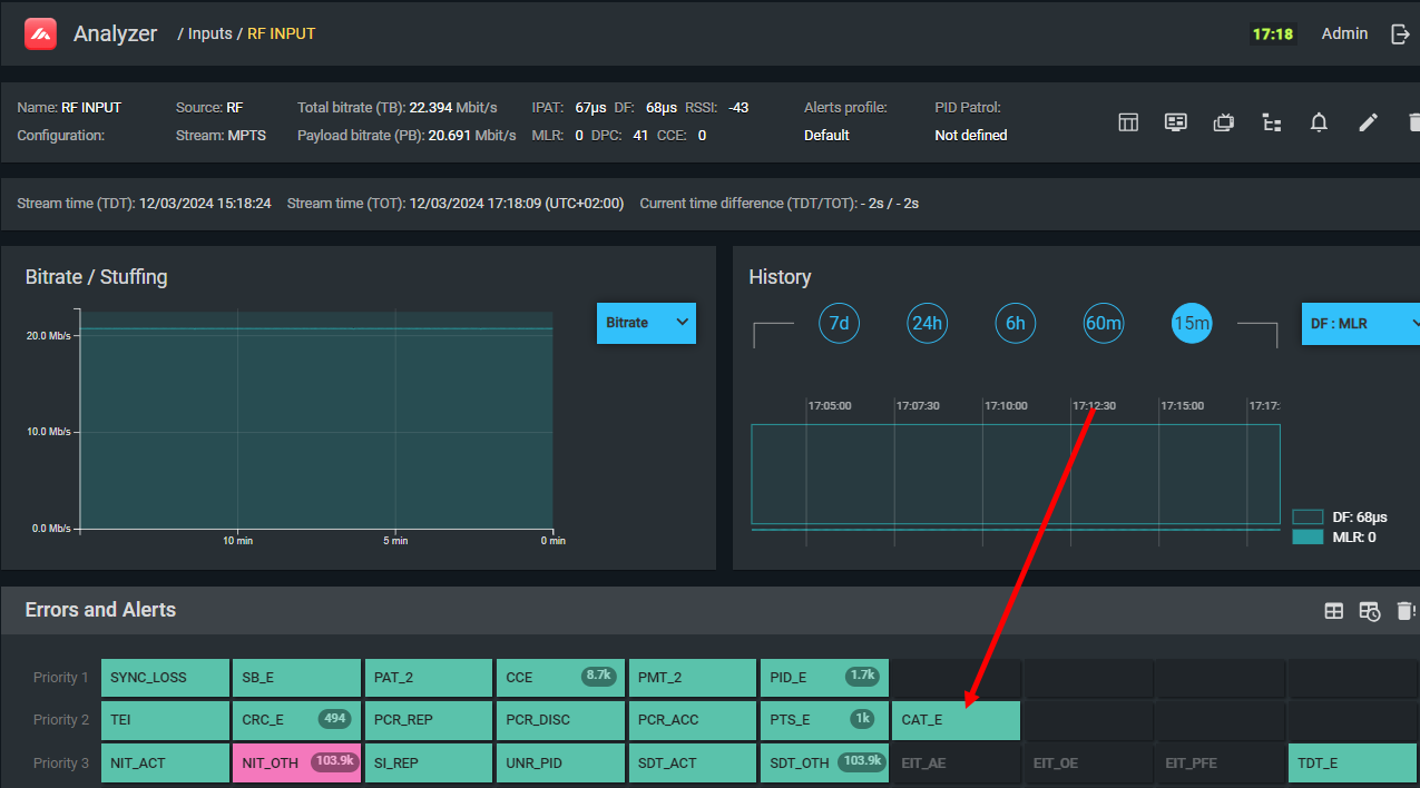 - At least one PID has the scrambling flag set in its TS packet header, AND the CAT has been absent for more than 1 second.
