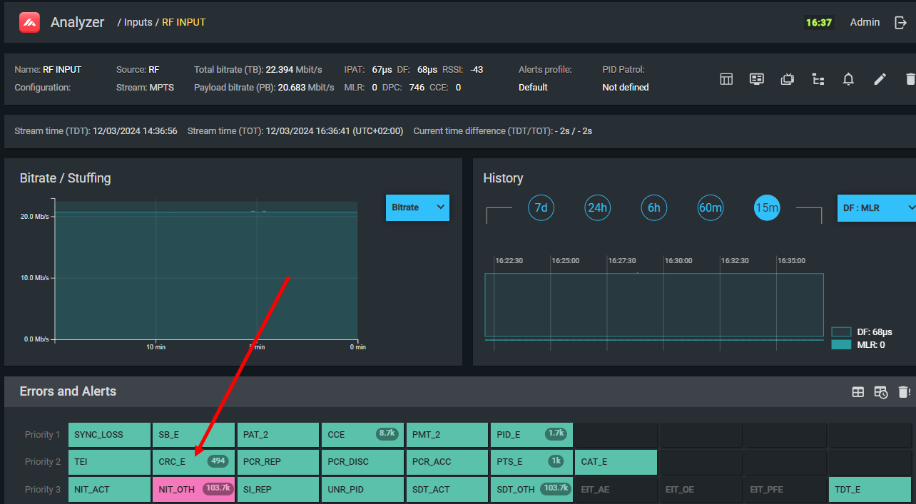 - RF interference or IP bit errors corrupting individual bytes within the TS payload