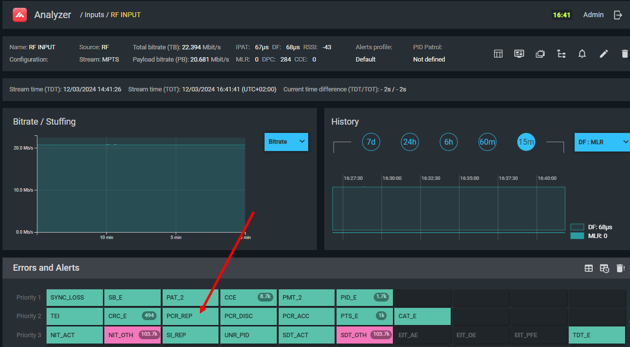 - VBR service (in this case PCR is not meaningful; the error can be disabled in the TS Analyzer profile)