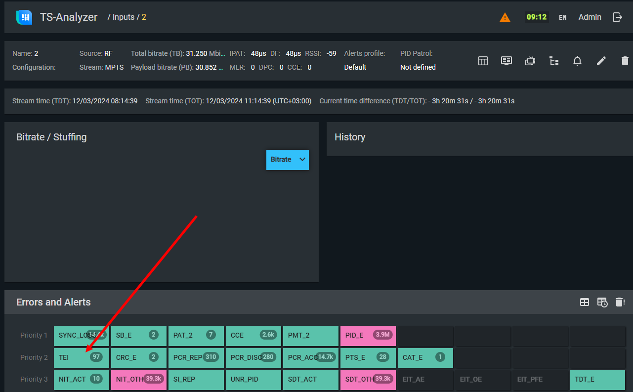 - A device in the chain (typically the multiplexer, or a demodulator that sets TEI on uncorrectable packets) has flagged corrupted packets.
