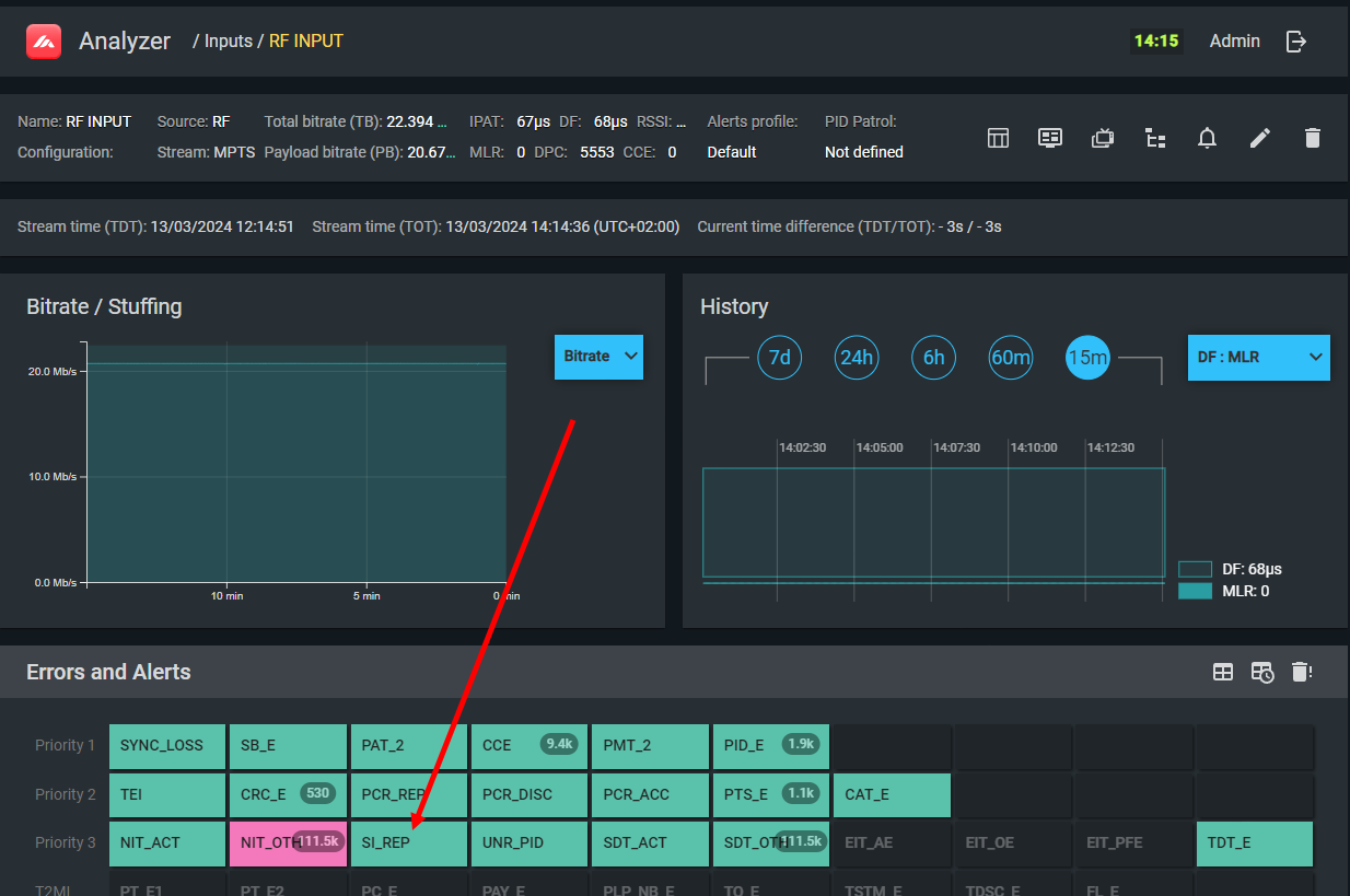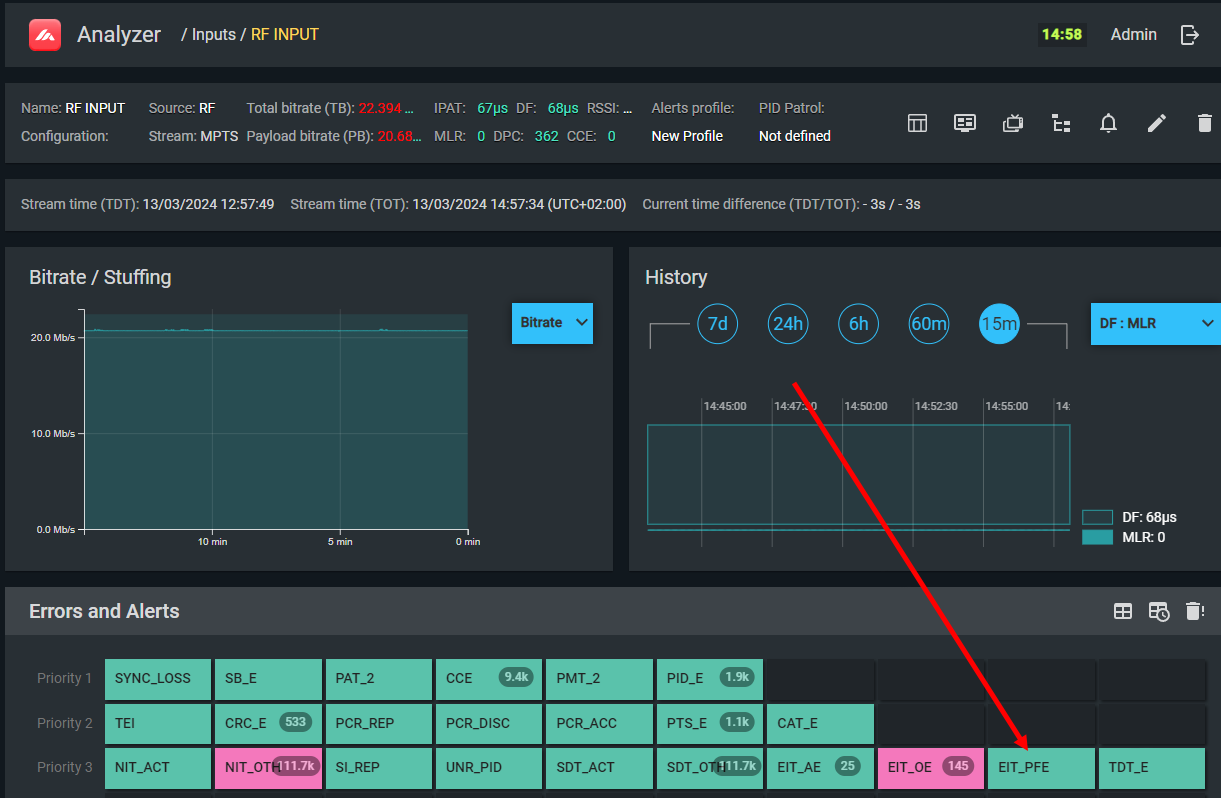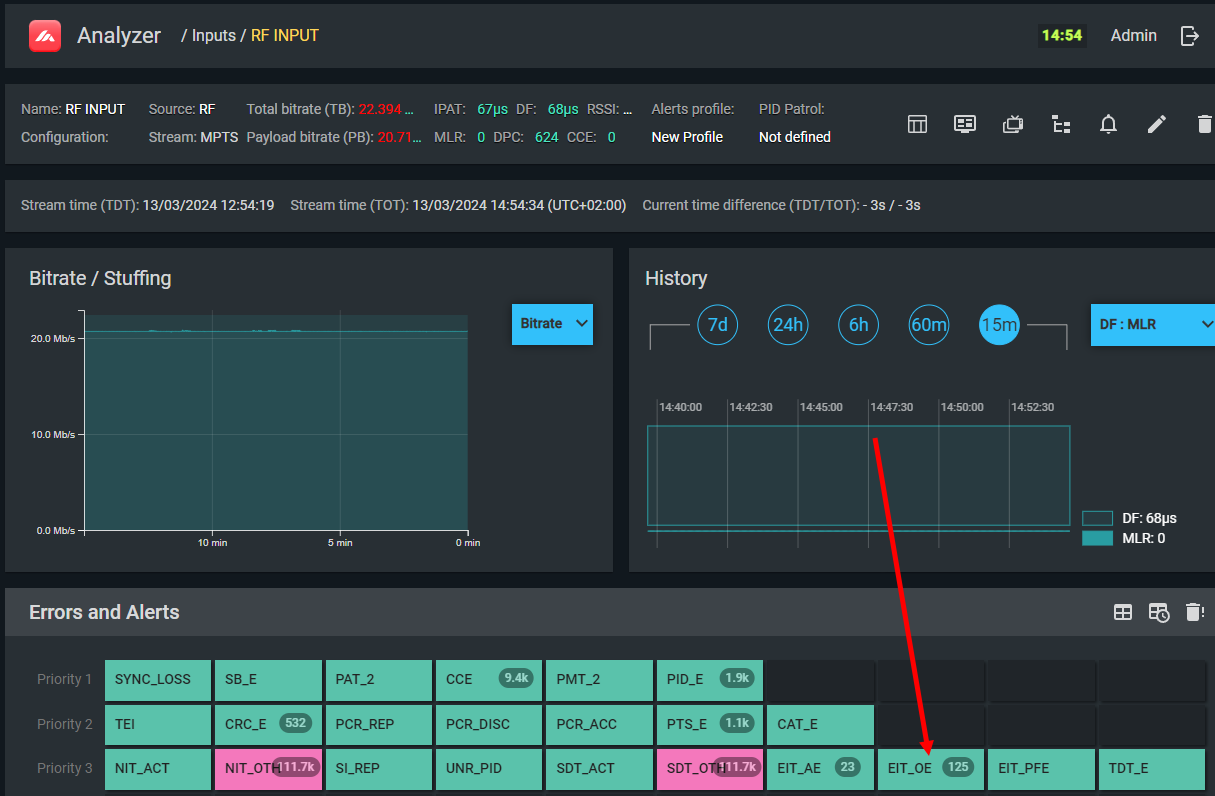 EIT_other sections on PID 18 have been absent for more than 10 seconds. This only affects EPG loading speed when viewers switch to services on different TSes. If EIT_other is not used in your network, disable this check in the profile.