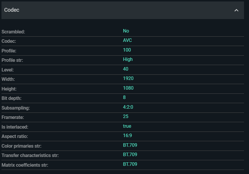 This shows compression parameters extracted from the bitstream itself. An example of compressed video properties: